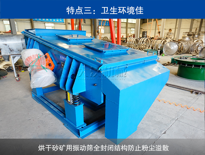 烘干砂礦用振動(dòng)篩全封閉結(jié)構(gòu)防止粉塵溢散