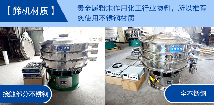 【篩機(jī)材質(zhì)】—— 貴金屬粉末作用化工行業(yè)物料,所以推薦您使用不銹鋼材質(zhì),而常用的不銹鋼超聲波振動(dòng)篩分為兩種結(jié)構(gòu),一種是整機(jī)均采用不銹鋼制成,另一種是與物料接觸不分為不銹鋼材質(zhì),底座為碳鋼材質(zhì),至于如何選擇就看您對(duì)衛(wèi)生環(huán)境的要求以及成本預(yù)算了。