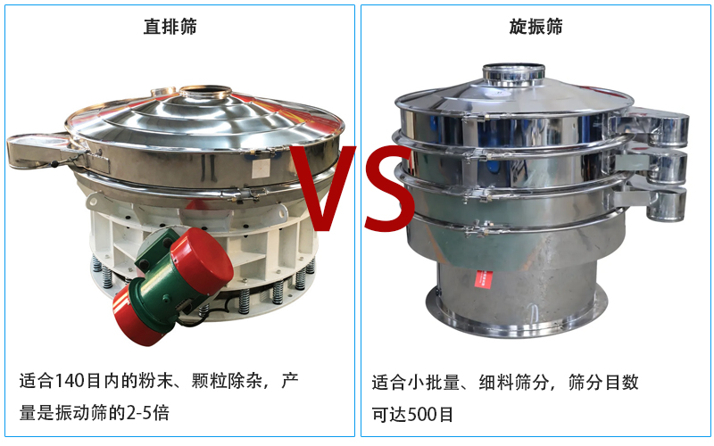 | 目數 | 篩分目數在140目左右,主要是為粉類物料除去大塊雜技或者篩松作用。 | 篩分的精度可以做到更高,篩分精度范圍也可達到500目左右。 |